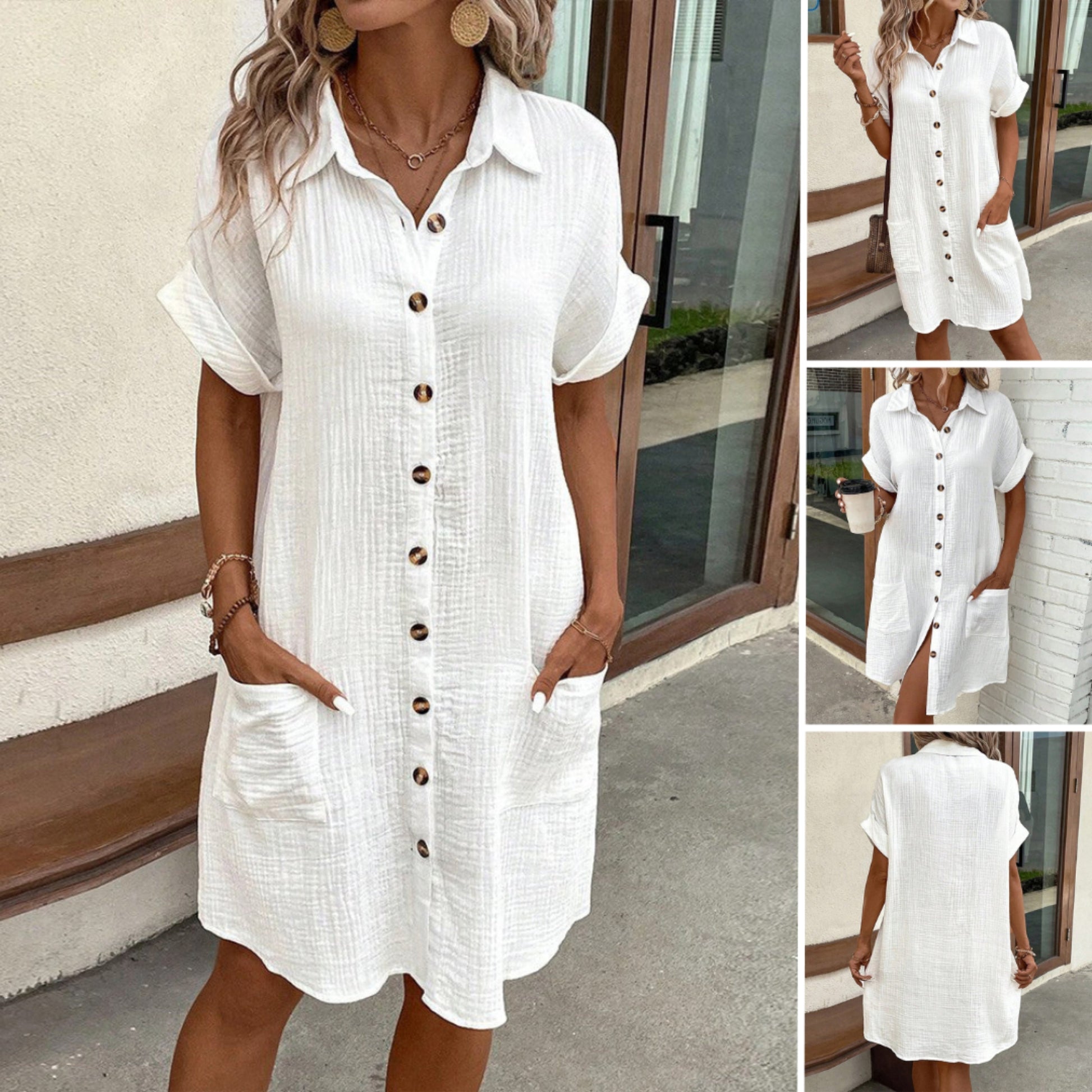 Ja, deze overhemdjurk is verkrijgbaar in diverse kleuren. Bekijk onze collectie om je favoriete kleur te kiezen.
